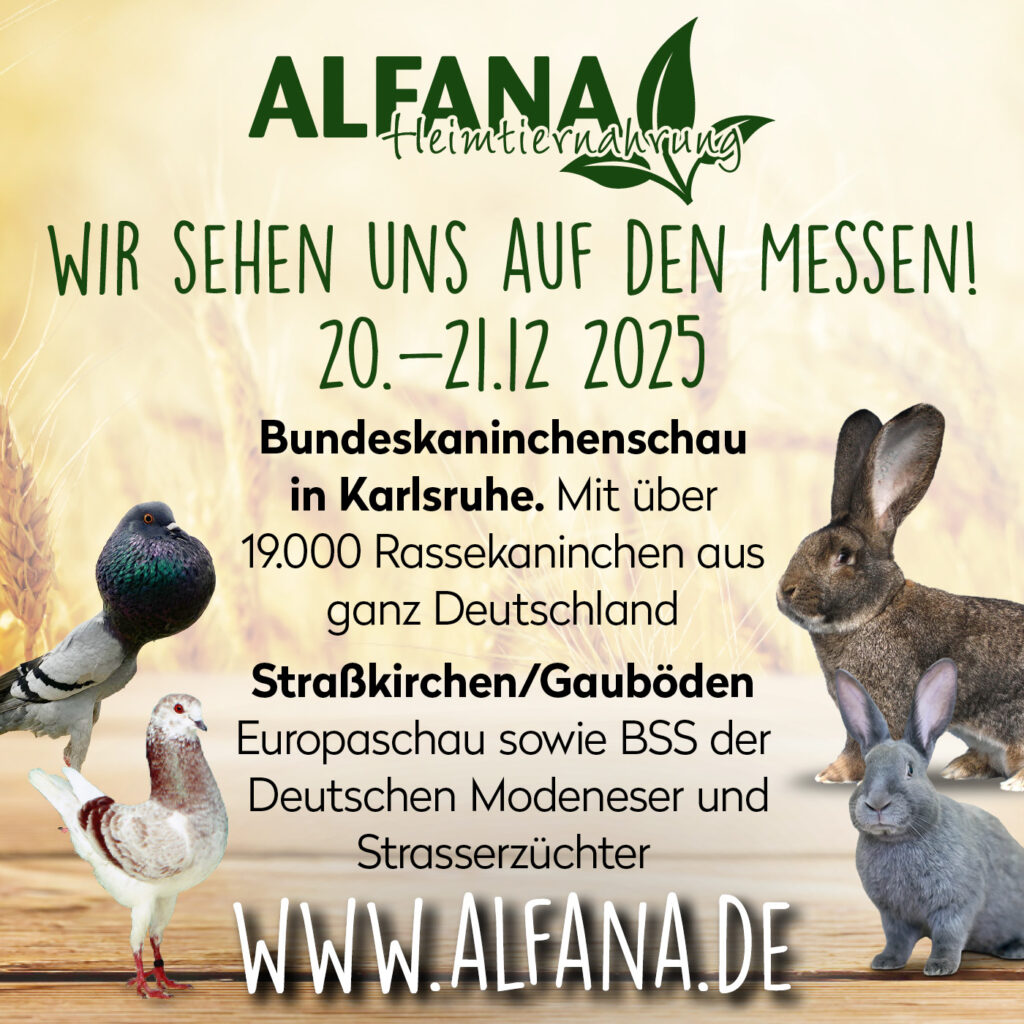 Am 20.–21.12. ist ALFANA Heimtiernahrung auf zwei bedeutenden Zuchtveranstaltungen für euch vor Ort: